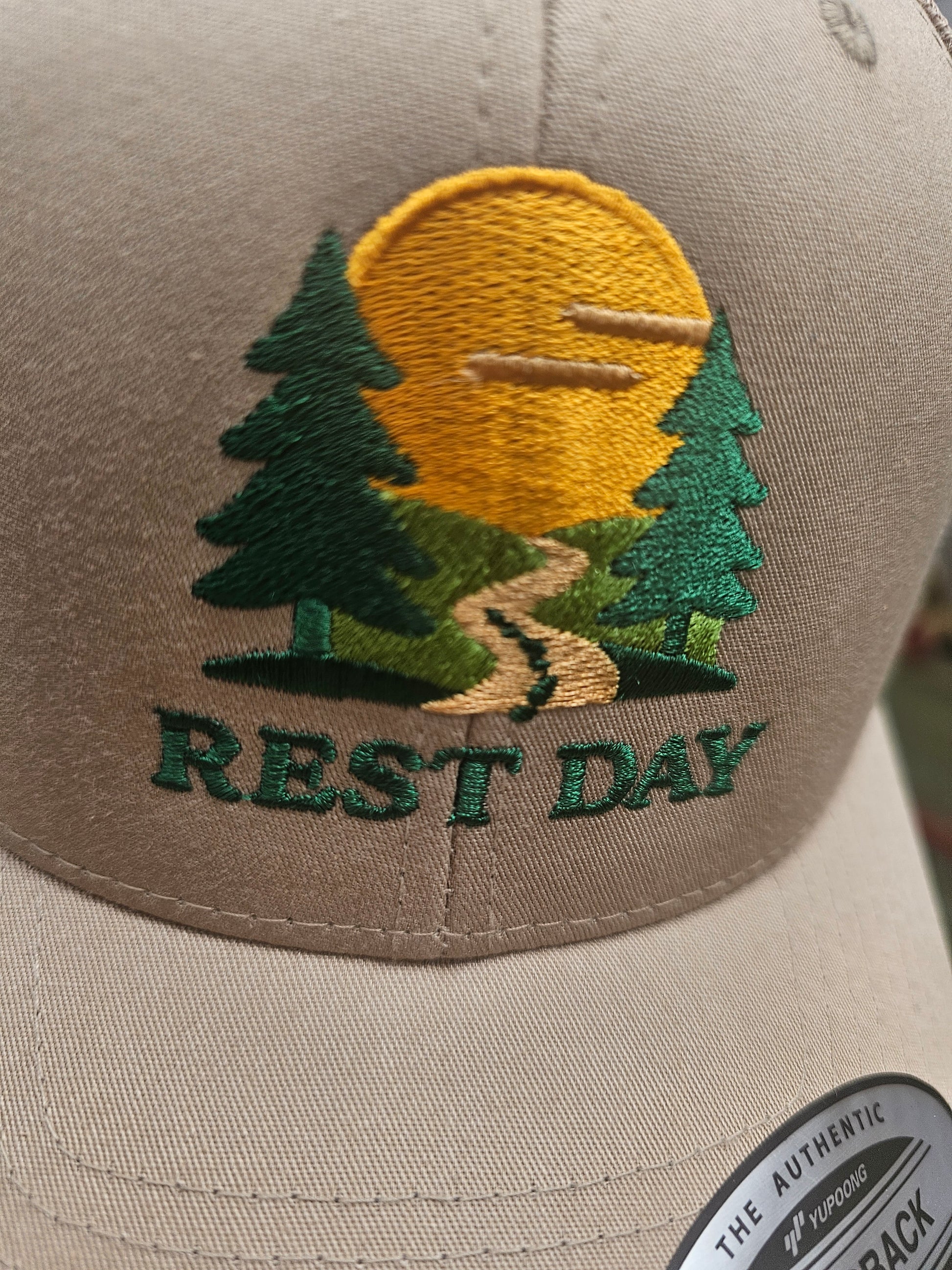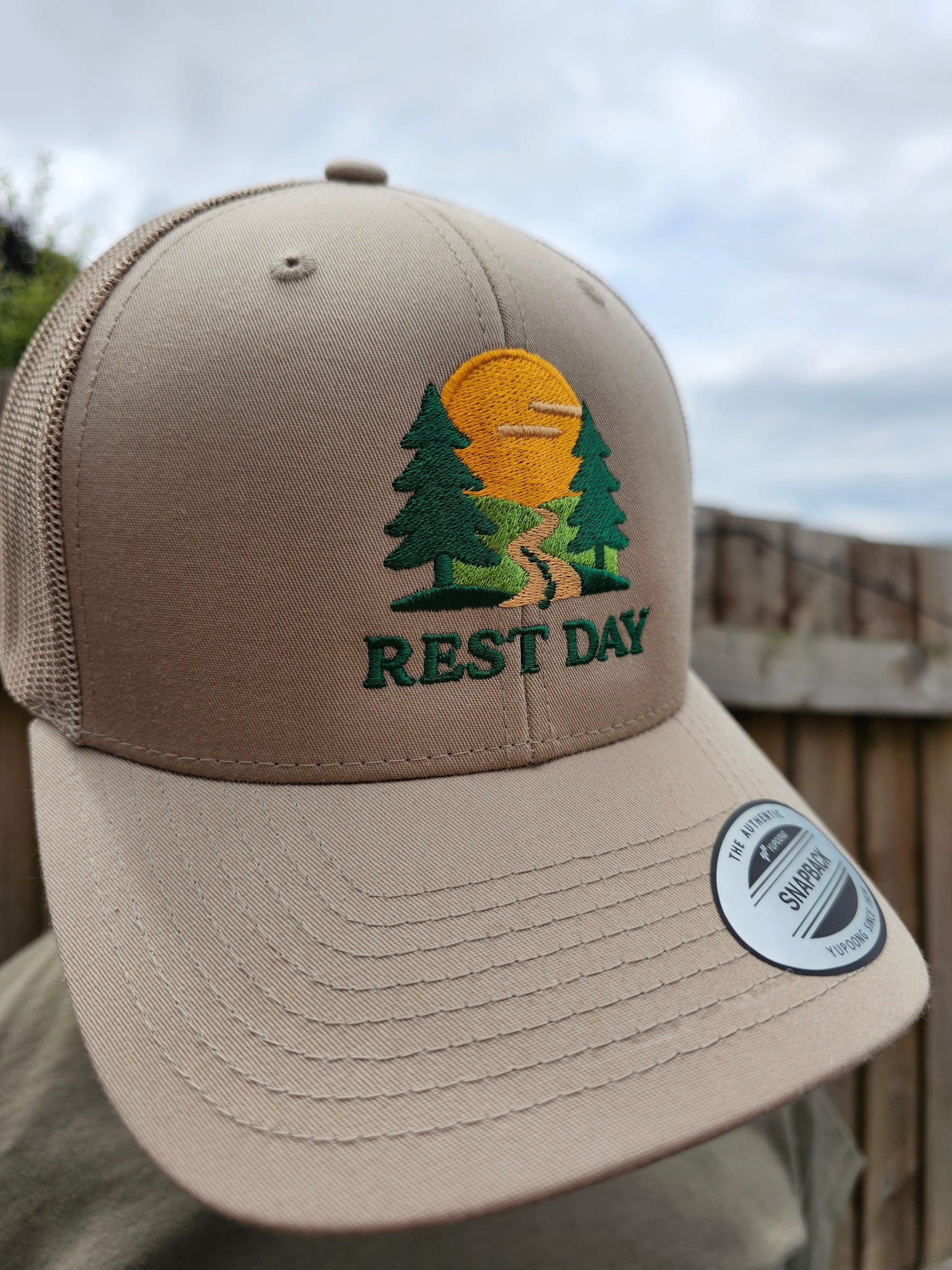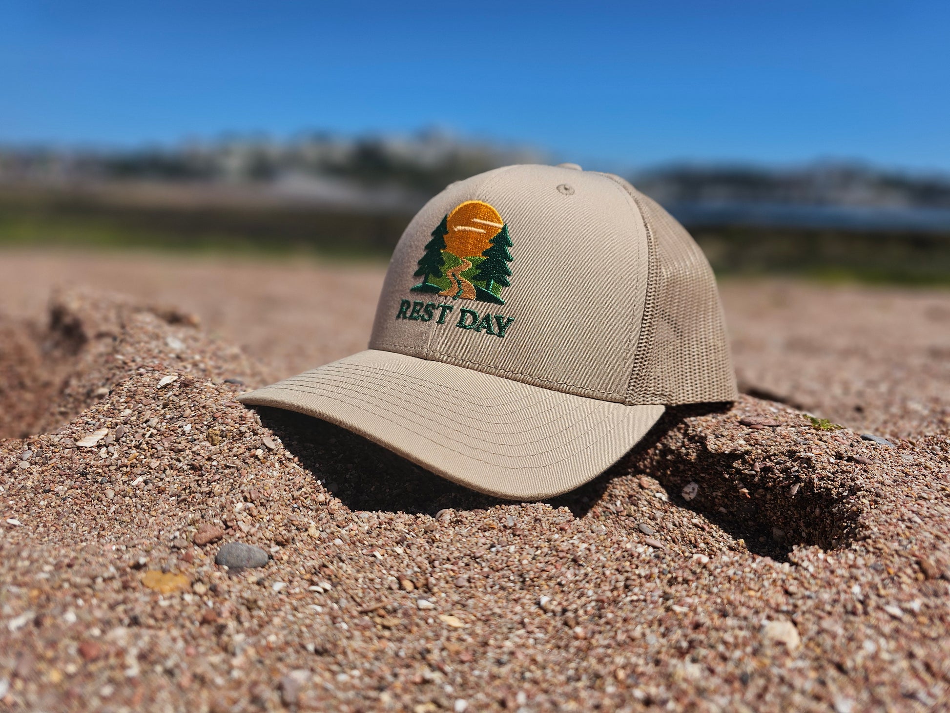 Rest Day Logo Trucker Hat – Khaki (Premium Edition)