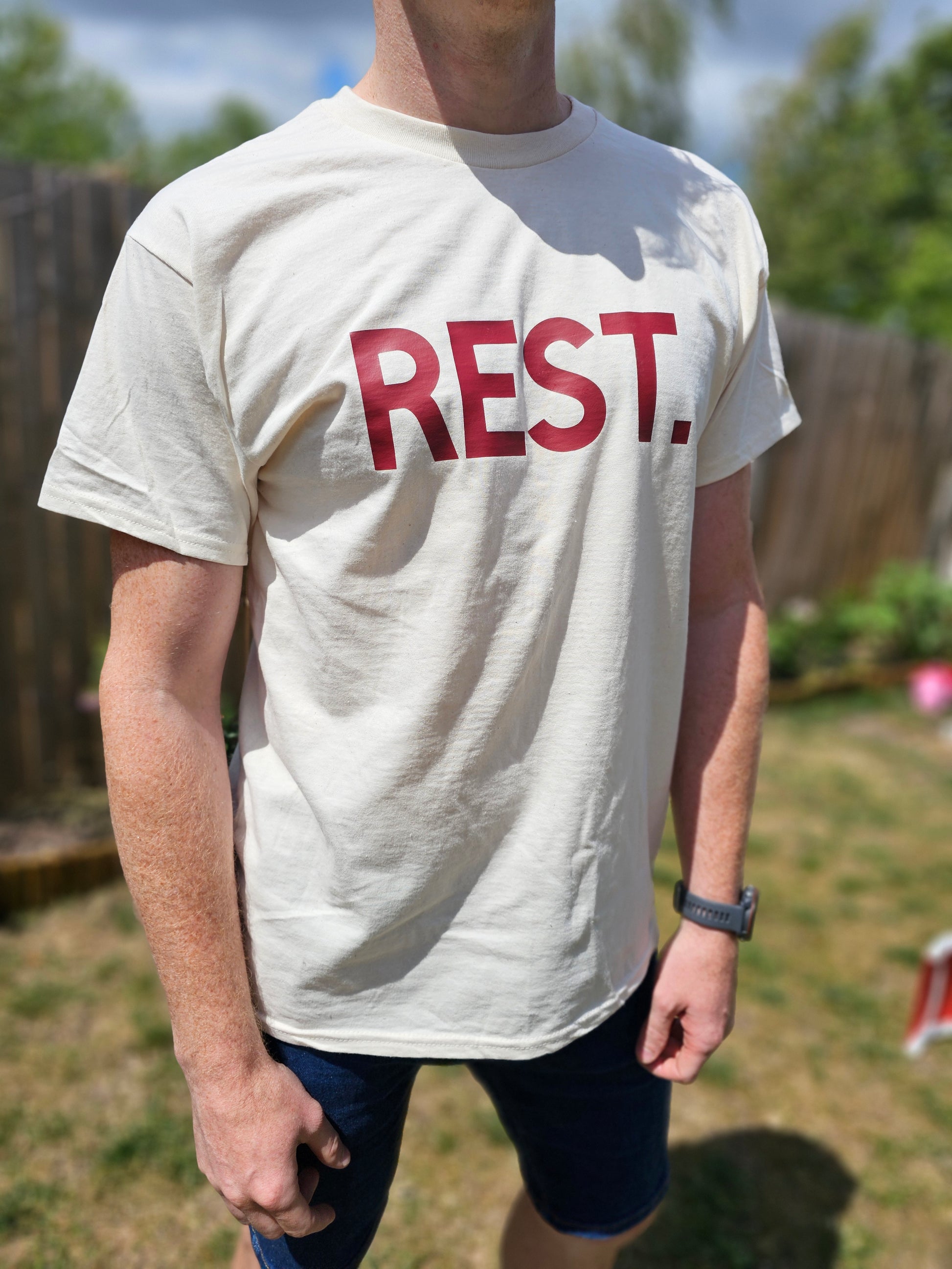 This tee features just one word: REST.